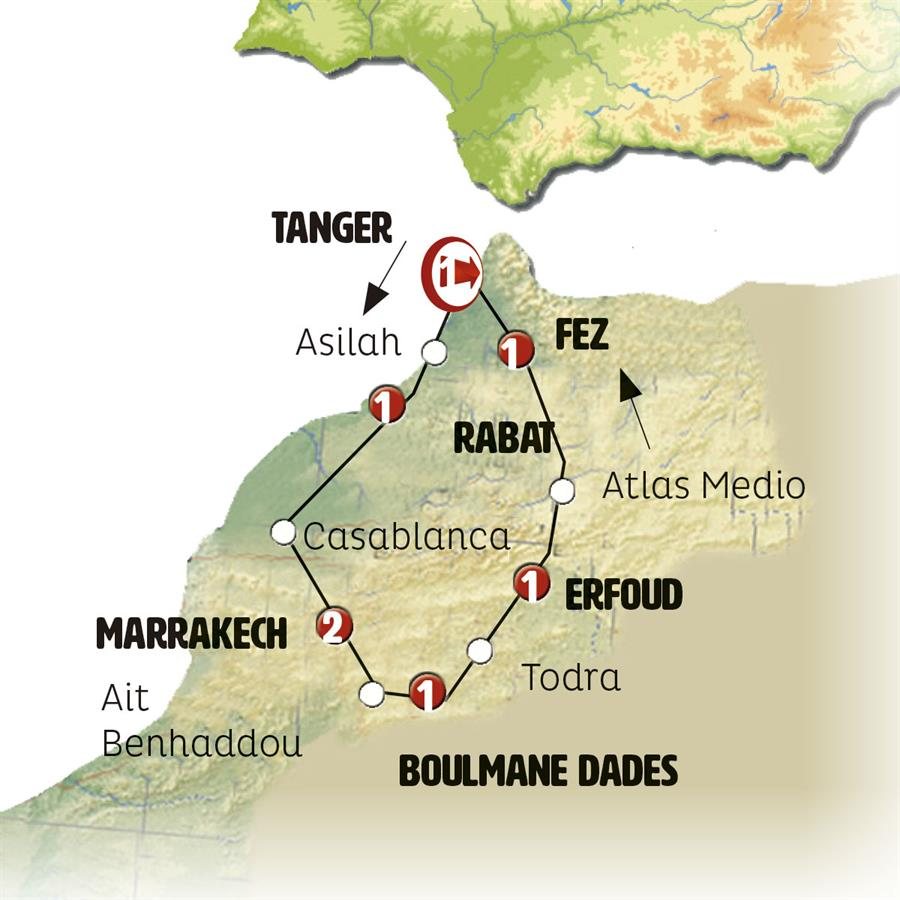 Salimos a cruzar el Atlas, elevadas cumbres frecuentemente nevadas nos saludan despidiendo el palmeral de Marrakech. Pequeños pueblos bereberes se cuelgan en los abismos. Conocemos el poblado fortificado de AIT BEN HADU, lugar donde se han rodado numerosas películas. Tanto en esta etapa como en la de mañana recorreremos los llamados paisajes bíblicos. Tiempo en OUARZAZATE ciudad con impresionante Kasbah. Continuamos hacia el Valle de las Rosas. BOUMALNE DADES. Cena incluida. Nota: En muy raras ocasiones (durante el invierno) pueden existir problemas de nieve en los pasos del Atlas; si la carretera por este motivo está cortada, se haría programa alternativo (llegando o no al Sahara según pasos alternativos de montaña cerrados).
