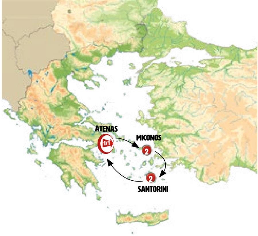 Desayuno. Por la mañana traslado al puerto para embarcar en ferry a la isla de SANTORINI. Llegada y traslado al hotel. Resto del día libre para conocer esta isla única en el mundo tanto por su historia, su geología como por sus pintorescas casas blancas con techos azules. Una isla donde todos los sentidos se dejan llevar por el maravilloso paisaje y sus habitantes. Nota: Dependiendo de la disponibilidad hotelera puede verse invertido el recorrido, pudiendo visitarse primero Santorini y después Miconos.