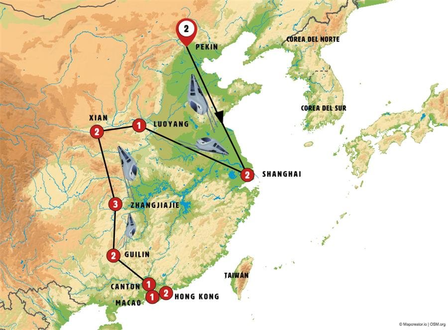 Canton, incluimos una visita de unas dos horas en esta pujante metrópolis del sur de China, pasearemos por la calle Shangiaxju con su mercado tradicional, conoceremos la Casa del clan Chen de finales del siglo XIX y recorreremos la zona ribereña del rio. Tiempo libre y almuerzo incluido. Por la tarde viajamos a ZHUHAI, junto al mar de China, nos detenemos junto al impresionante teatro de la Opera, construido en un terreno ganado al mar, inaugurado en 2016 su impresionante forma simbolizan el sol y la luna. PASO DE FRONTERA y entrada en MACAO,donde conocemos la zona de los casinos, muchos de ellos del mismo estilo que los existentes en Las Vegas, su actividad es impresionante. MUY IMPORTANTE: Si en su viaje vuelve a entrar posteriormente en China continental tras su estancia en Macao y Hong Kong, requiere de una visa de doble entrada.