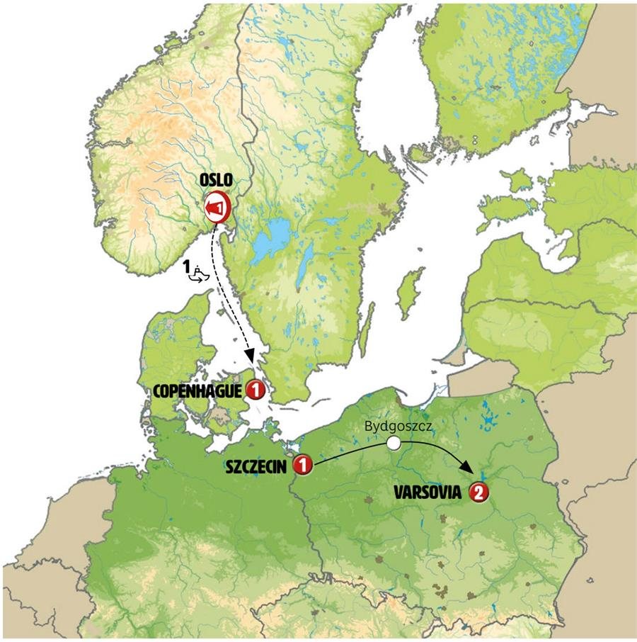 Tras el desayuno salimos hacia GEDSER, pequeña población, la que se encuentra más al sur de Escandinavia. En este punto, sobre las 11 hrs, embarcamos en moderno ferry que nos lleva hacia Alemania. Travesía de dos horas atravesando el mar Báltico, sugerimos almorzar en el barco. ROSTOCK, llegada y tiempo para pasear en esta ciudad, el mayor puerto alemán del báltico. Su casco antiguo tiene mucha vida destacando la plaza del mercado, el ayuntamiento y la iglesia Gocia de Santa Maria. Continuamos nuestra ruta hacia Polonia a través de la región de Pomerania. SZCZECIN, llegada al final de la tarde a esta histórica ciudad universitaria a orillas del Oder que cuenta con un agradable centro histórico, destacando el castillo de los príncipes de Pomerania y las terrazas junto al rio. Tiempo libre para pasear.