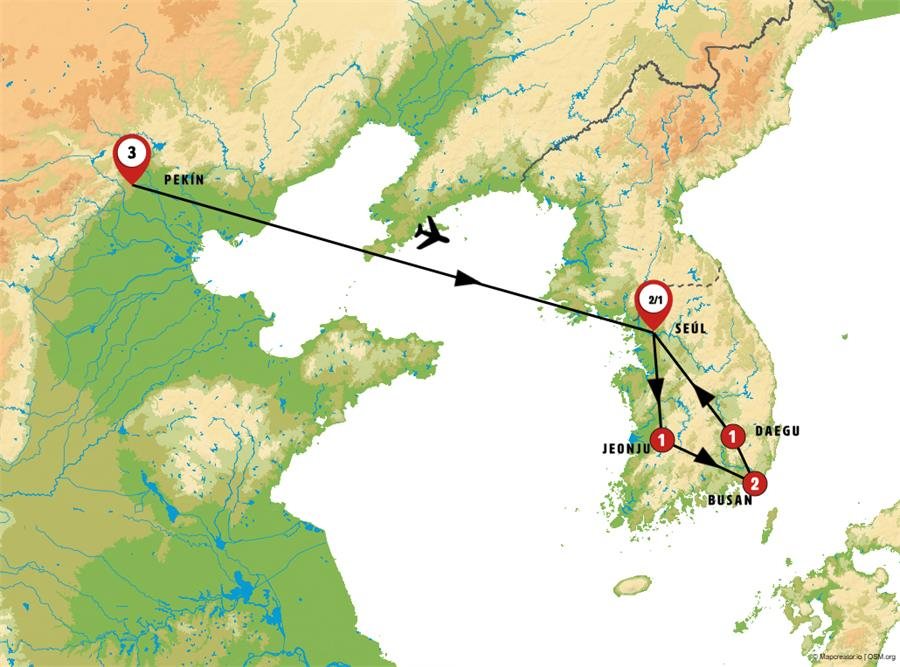 Hoy conoceremos el Palacio de Gyeongbokgung (entrada incluida), impresionante palacio con 600 años de historia, donde asistiremos -si se realiza- a la ceremonia del cambio de guardia. Salimos de Seúl hacia el sur de Corea. Llegamos a SUWON, antigua capital de Corea, conocida por sus impresionantes murallas Patrimonio de la Humanidad. Conoceremos la impresionante muralla con sus fortificaciones y visitaremos Hwaseong Haenggung, el palacio de verano (entrada incluida). Almuerzo incluido. Continuamos ruta a JEONJU, conocemos su fascinante casco histórico (hanok village), con todas sus casitas, sus tiendas tradicionales y galerías de arte.