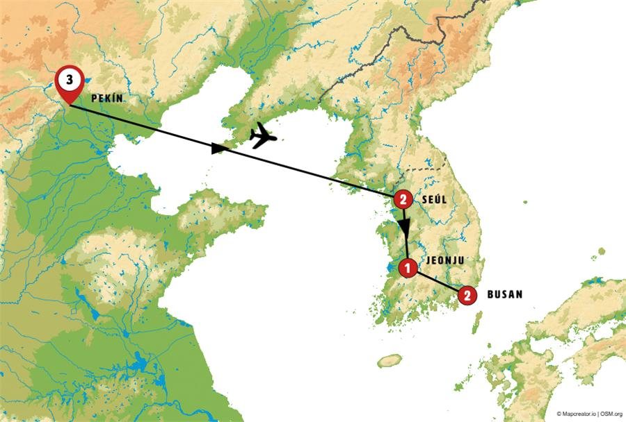Hoy conoceremos el Palacio de Gyeongbokgung (entrada incluida), impresionante palacio con 600 años de historia, donde asistiremos -si se realiza- a la ceremonia del cambio de guardia. Salimos de Seúl hacia el sur de Corea. Llegamos a SUWON, antigua capital de Corea, conocida por sus impresionantes murallas Patrimonio de la Humanidad. Conoceremos la impresionante muralla con sus fortificaciones y visitaremos Hwaseong Haenggung, el palacio de verano (entrada incluida). Almuerzo incluido. Continuamos ruta a JEONJU, conocemos su fascinante casco histórico (hanok village), con todas sus casitas, sus tiendas tradicionales y galerías de arte.