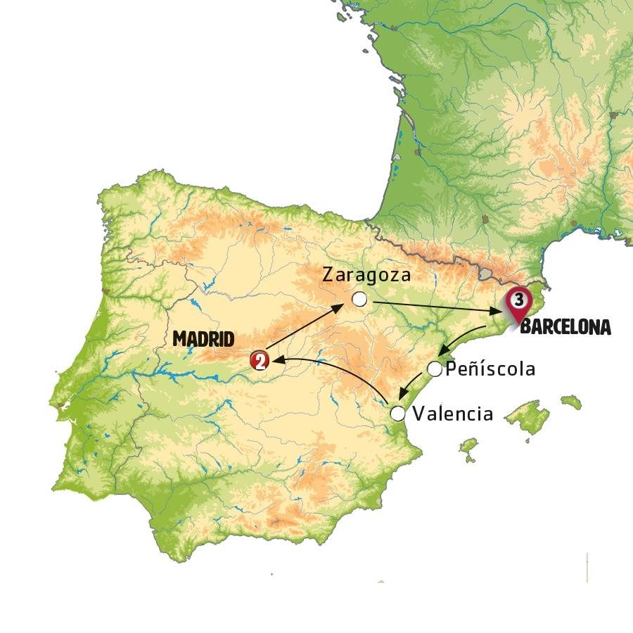 Viajamos hacia el sur siguiendo el Mediterráneo. Una parada en PEÑISCOLA, pequeña ciudad medieval amurallada rodeada por hermosas playas. Tiempo para un paseo. Seguimos a VALENCIA, ciudad portuaria de la costa levantina donde llegaremos a la hora del almuerzo. ¿Probará su paella?. Sobre las 16:30 h salimos y tras realizar una breve parada en la vanguardista Ciudad de las Artes y las Ciencias de Valencia, seguiremos hacia MADRID. Llegada prevista sobre las 20:30 / 21.00hrs. A continuación, y como forma de dar la bienvenida a la ciudad, incluimos un traslado a la Plaza Mayor, lugar siempre concurrido y habitual para salir a tomar unos pinchos o vinos en alguno de sus numerosos mesones. Nota: Si el número de viajeros de Valencia a Madrid es muy limitado, el viaje podrá efectuarse en tren de alta velocidad.