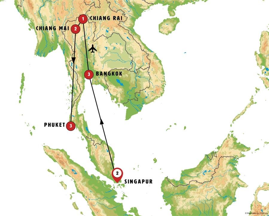 Después de un desayuno temprano en el hotel, traslado al sur de Chiang Mai, por una carretera que atraviesa colinas, bosques y zonas agrícolas hasta llegar al Santuario de Elefantes. El santuario ofrece al visitante una experiencia única para aprender e interactuar con los elefantes en un entorno natural. Almuerzo incluido. Por la tarde visita de la antigua y moderna ciudad de Chiang Mai, incluyendo su antigua muralla derrumbada la ciudad, sus puertas, foso, mercados eclécticos, zonas residenciales, los consulados extranjeros, los edificios del gobierno y Thapae Road, una de las calles principales de Chiang Mai. Posteriormente, traslado hasta la montaña de Doi Suthep un lugar sagrado y respetado por los tailandeses desde hace más de 1200 años ya que sus antepasados creían que las almas de los difuntos residían en él, convirtiendo esta colina en el epicentro del budismo por el imperio Lanna. Aquí se encuentra el Templo budista de Wat Phra That Doi Suthep, el templo más sagrado del norte de Tailandia. Desde aquí se puede admirar una fantástica vista de la ciudad. Alojamiento en Chiang Mai.