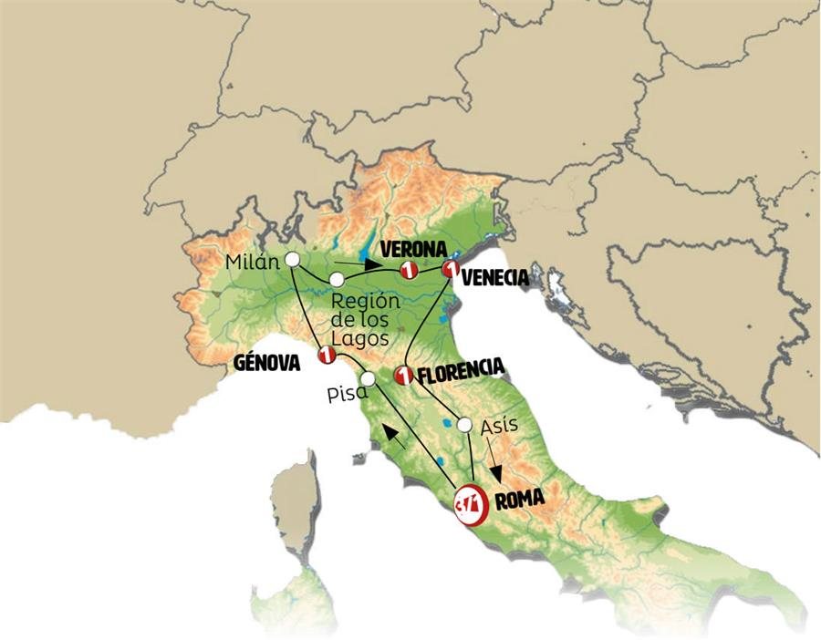 Viajamos a PISA, incluimos un trencito desde el estacionamiento turístico para desplazarnos hasta el recinto monumental campo de los Milagros donde se encuentra la popular Torre Inclinada. Almuerzo incluido. Tras ello viajamos a SANTA MARGARITA DE LIGURE en donde embarcamos hacia PORTOFINO, uno de los lugares más exclusivos de Europa, hermoso paseo por el mar y tiempo libre. Continuamos a GÉNOVA. Su centro nos recuerda que fue una república pujante en la Edad Media. Nota: Del 30 de mayo al 2 de noviembre no está permitido el acceso de autobuses turísticos a Santa Margarita Ligure. En ese período, la parada se realizará en RAPALLO, otro bellísimo destino costero de la región de Liguria, desde donde embarcaremos hacia Portofino.Nota adicional: Por condiciones meteorológicas adversas o durante el invierno, la travesía marítima hacia Portofino (ya sea desde Santa Margarita o desde Rapallo) podría no estar operativa por las condiciones del mar.