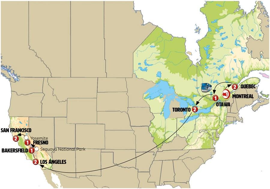 Después del desayuno, salimos al hermoso pueblecito de NIAGARA ON THE LAKE, tras un tiempo para pasear continuamos hacia las Cataratas del Niágara. Una vez allí, fotografiaremos el Reloj Floral antes de embarcarnos en el Hornblower Niagara Cruise, un pequeño barco que nos llevará a la base de las famosas Cataratas. Posteriormente tendremos tiempo libre para disfrutar de las atracciones en Clifton Hill. Al final de la tarde llegamos al hotel en Niagara Falls.A la hora marcada por su guía, les incluiremos un traslado al aeropuerto para tomar el vuelo interno incluido en su viaje. A su llegada a destino les brindaremos un nuevo traslado hasta el hotel. Su guía les contactará al final de la tarde o podrá consultar las informaciones colocadas en la recepción de su hotel. Nota: recuerde que en los vuelos internos el equipaje normalmente permitido es una única maleta en bodega de hasta 23 kgs. los cargos por exceso de equipaje deberán ser abonados directamente por el pasajero a la compañía aérea.