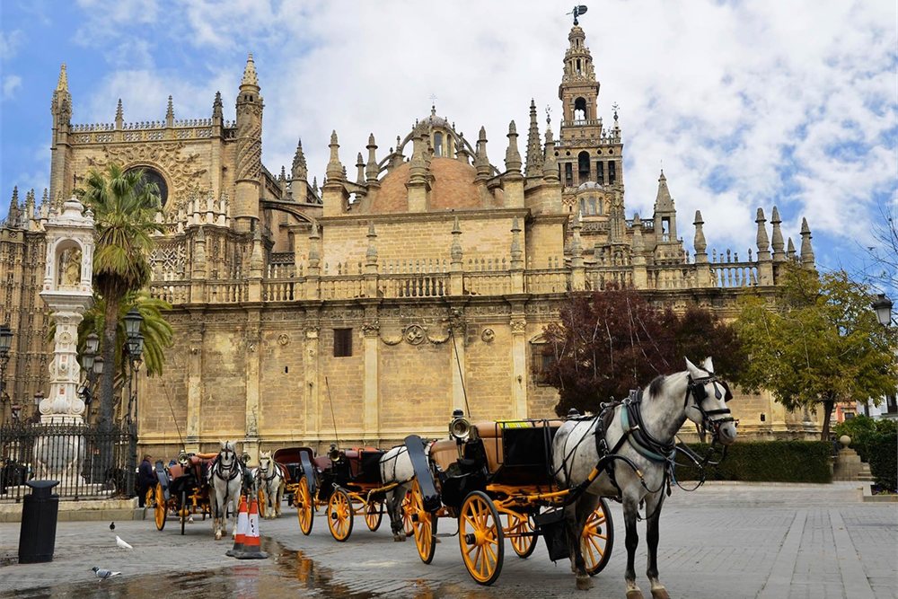 Media pensión. Por la mañana visita de la ciudad, incluyendo el Parque de María Luisa, la Plaza de España, el exterior de la imponente Catedral y la Giralda y el típico Barrio de Santa Cruz con sus calles, plazas y estrechos callejones. Opcionalmente, tendrá la posibilidad de navegar por el rio Guadalquivir, donde podrá disfrutar de una panorámica con la Torre del Oro y la Expo 92. Visitar la plaza de toros de la Maestranza y por la noche continuar con un espectáculo de baile flamenco
