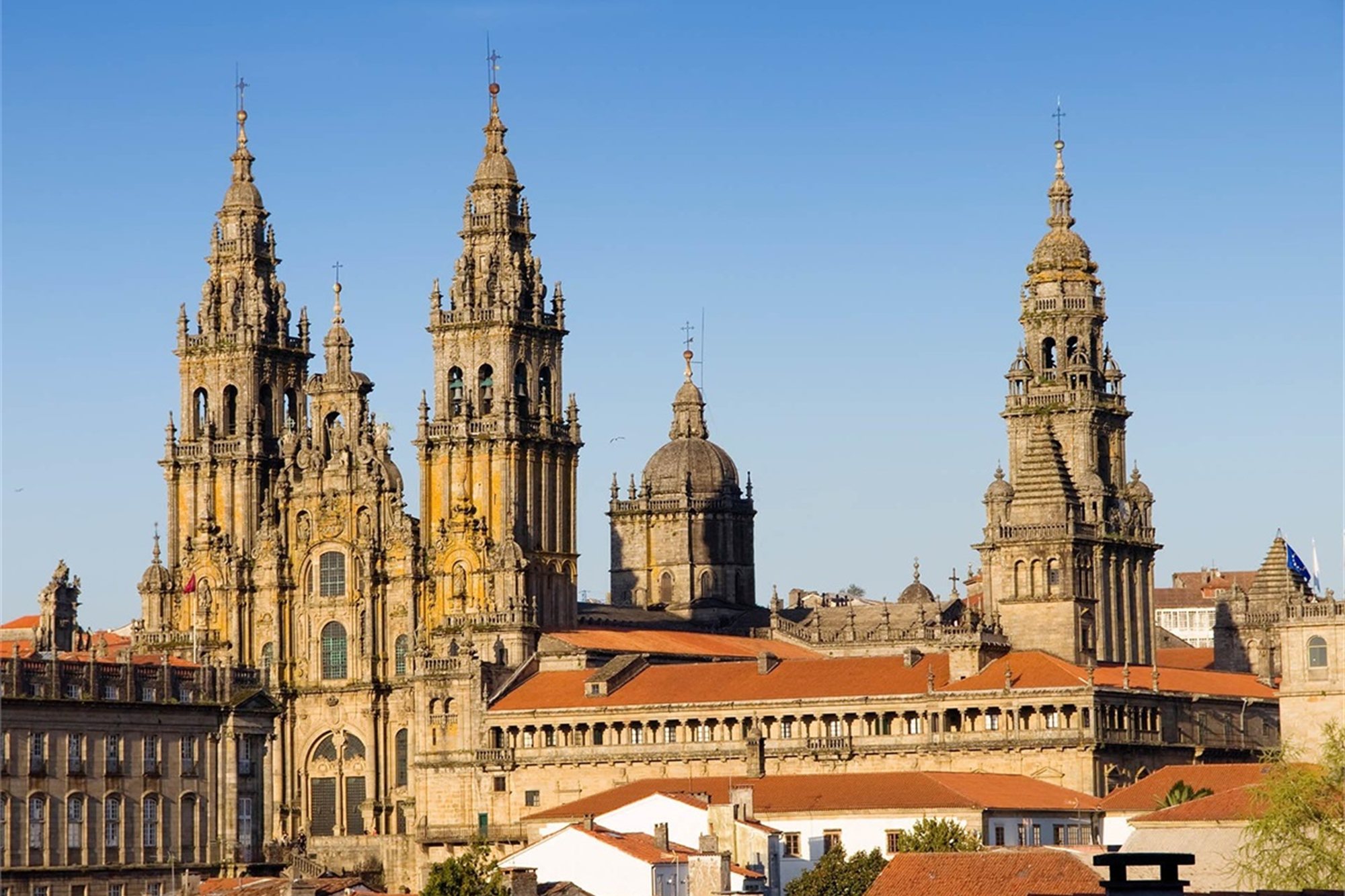 El equipaje tendrá que depositarlo en la recepción del hotel/ pensión antes de las 8:00 hrs. Desayuno. Los nervios a flor de piel. Extrañas sensaciones. Es la última etapa. Recomendamos salir temprano para poder asistir a la misa del peregrino que se celebra a las 12:00 horas. Primero llegamos a Lavacolla y seguimos para subir por Monte do Gozo, donde podremos apreciar, de lejos, el primer atisbo de la ansiada Catedral. Finalmente, la Plaza del Obradoiro y la merecida satisfacción personal de haber llegado hasta aquí. Alojamiento.