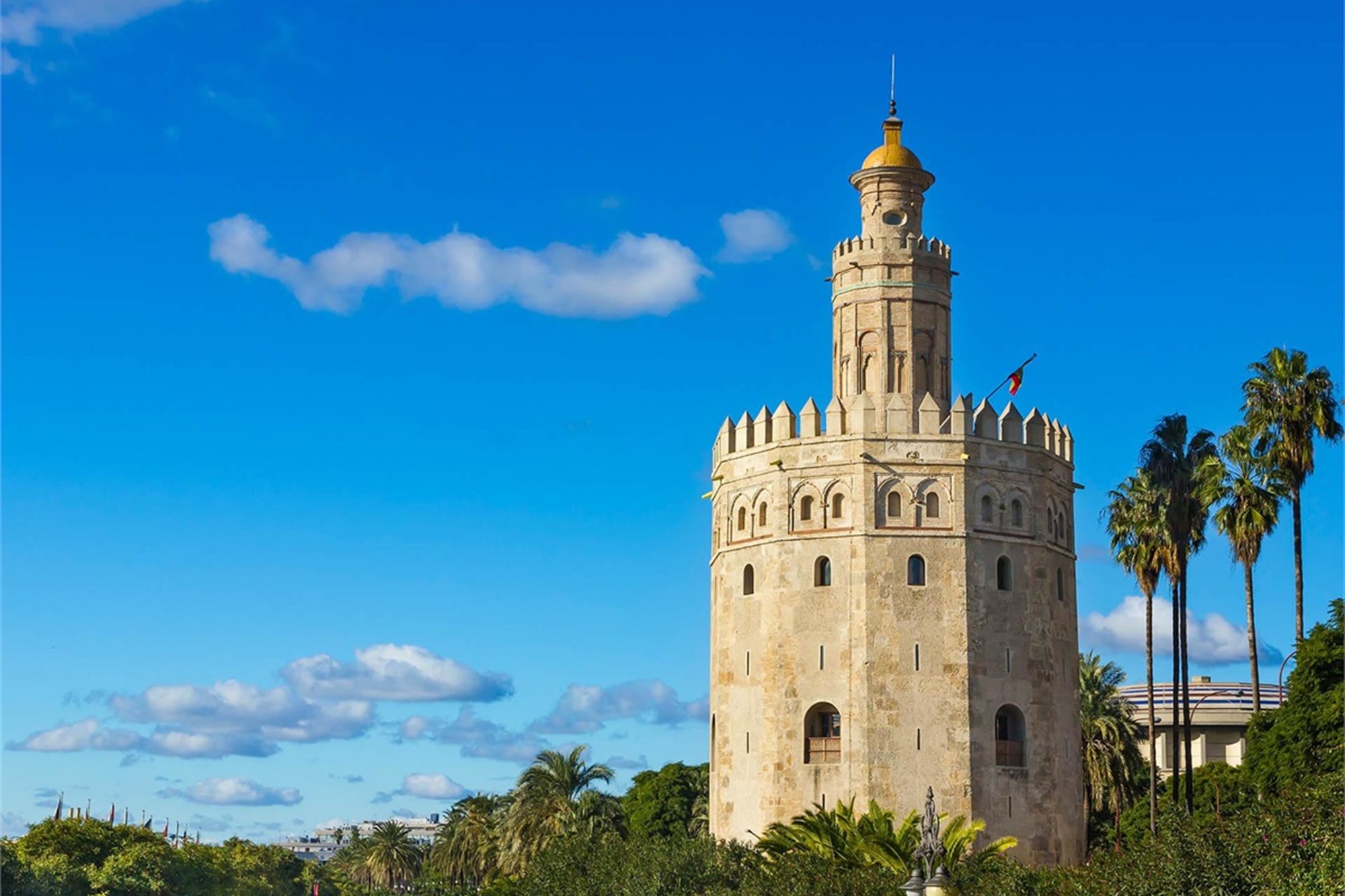 Desayuno. Por la mañana visita de la ciudad, incluyendo el Parque de María Luisa, la Plaza de España, el exterior de la imponente Catedral y la Giralda y el típico Barrio de Santa Cruz con sus calles, plazas y estrechos callejones. Opcionalmente, tendrá la posibilidad de navegar por el rio Guadalquivir, donde podrá disfrutar de una panorámica con la Torre del Oro y la Expo 92. Visitar la plaza de toros de la Maestranza. Almuerzo libre. Por la noche, en opcional, podrá asistir a un espectáculo de baile flamenco. Alojamiento.