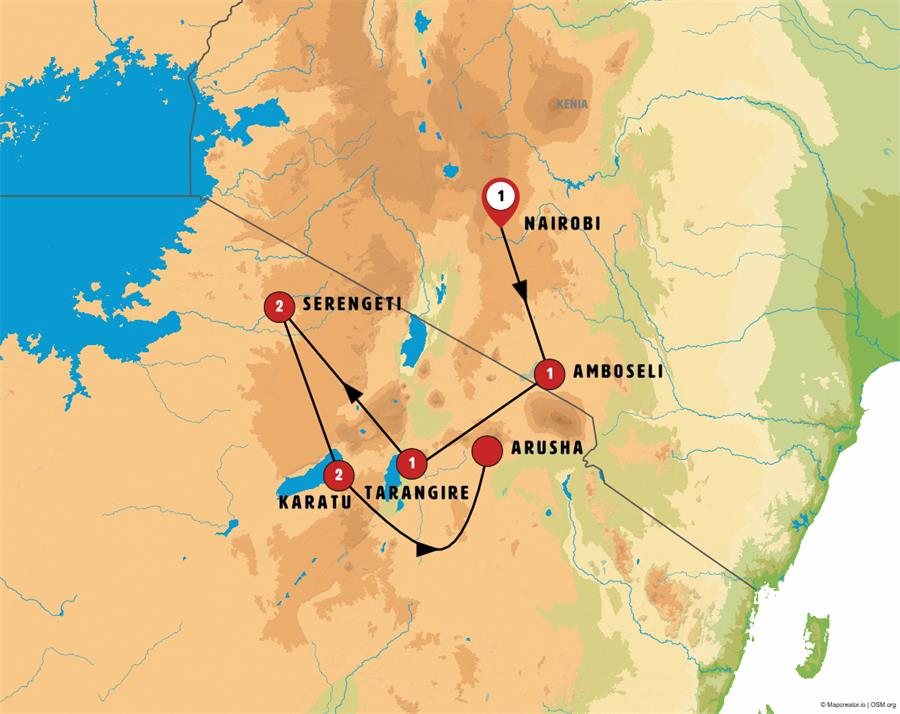 Desayuno en el hotel.Salida hacia Namanga situada en la frontera de Kenia/Tanzania.Trámites de frontera,cambio de vehículos y continuación hasta Arusha.Salida a las 12.00 horas desde Arusha para el comienzo del safari en Tanzania.