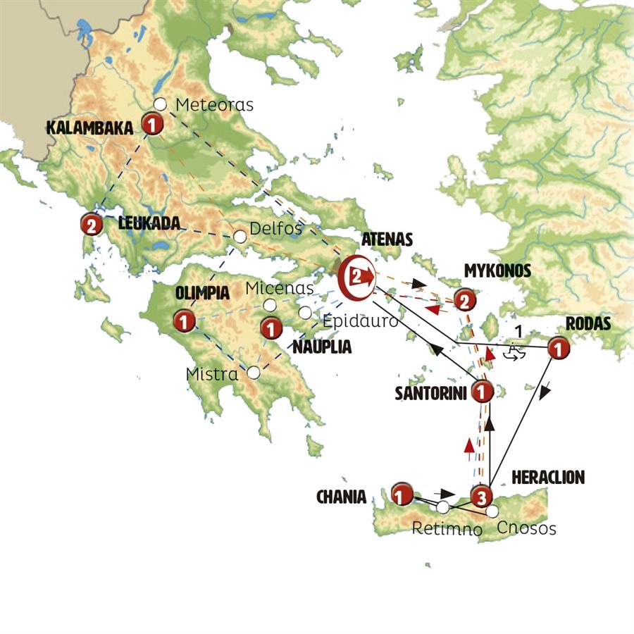 Incluimos excursión para conocer la isla de Rodas, viajamos a FILERIMOS, en lo alto de la colina, entre magníficos paisajes podrá usted conocer su pequeño monasterio. Tras ello viajamos a LINDOS, su fortaleza medieval y Acrópolis Griega dominan el mar, podrá pasear por las blancas y comerciales calles del centro, descansar en sus playas o subir (en burro si lo desea) a la Acrópolis. Tras la hora del almuerzo regresamos a Rodas. Tarde libre. A última hora de la tarde nos traslados al aeropuerto. Tomamos vuelo hacia la isla de CRETA.- llegada a la isla y traslado al hotel en HERACLIÓN. Nota: Los horarios de los vuelos directos entre Rodas y Creta son limitados y sufren modificaciones; en ocasiones el vuelo podrá ser realizado en la mañana del viernes o podrá ser realizado con escala en Atenas.