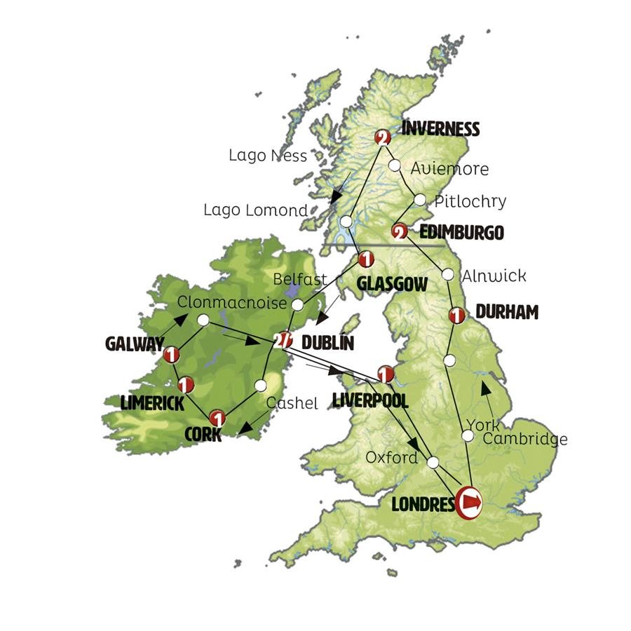 Gran tour de Escocia e Irlanda durante 14 días donde se visitaran las ciudades más importantes de estas ciudades, así como los bellos paisajes, este circuito es terrestre por lo cual no incluye vuelos.