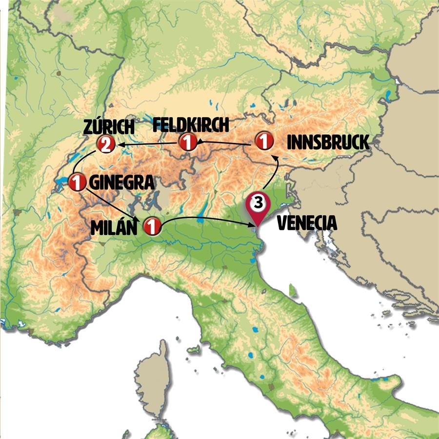 Saldremos de Venecia hacia VERONA, tenemos tiempo para conocer la ciudad de Romeo y Julieta con su importante anfiteatro romano. Posteriormente contorneamos el Lago de Garda, uno de los más hermosos lagos Alpinos. Tiempo en el hermoso pueblo de MALCECINE, desde donde embarcamos en un barquito para llegar, en la otra orilla, a LIMONE, muy pintoresco pueblo entre impresionantes paisajes de montañas que caen sobre el lago. Continuamos a Austria. INNSBRUCK, llegada a media tarde con tiempo para conocer su bonito centro histórico.