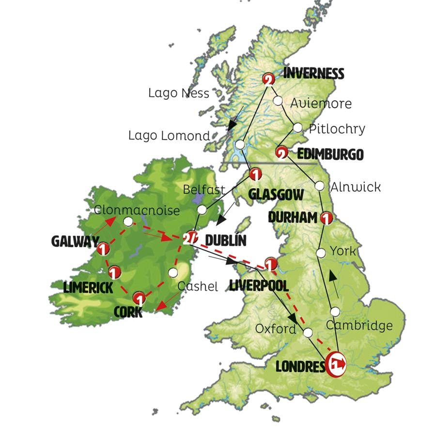 ¡Bienvenidos a su circuito de Europamundo!Salimos de Londres hacia el norte de Inglaterra. En CAMBRIDGE disponemos de tiempo para admirar sus hermosos colegios mayores. Seguimos a YORK, su catedral, su ambiente, sus murallas de origen romano, sus activas calles comerciales le dejaran un muy grato recuerdo. Tiempo para pasear. Tras ello seguimos hacia el norte. DURHAM. Llegada a esta hermosa pequeña ciudad medieval llena de vida con su catedral frente al castillo.