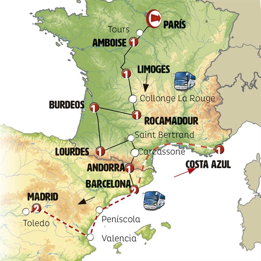 Viajamos por el sur de Francia, CARCASONA, tiempo conocer y almorzar en esta ciudad famosa por sus murallas medievales, su impresionante castillo y el pintoresco barrio histórico (la Cite). Tras ello continuamos hacia la cordillera de los Pirineos. FOIX, breve parada para pasear por la ciudad medieval dominada por su impresionante castillo de los condes de Foix. Seguimos hacia las altas montañas de los Pirineos, con cumbres nevadas todo el año. Entramos en ANDORRA, pequeño país cuya lengua oficial es el catalán. En nuestra ruta hacemos una corta parada junto a SANT JOAN DE CASELLES, pequeña iglesia románica del siglo XII . Continuamos a ANDORRA LA VELLA , capital del principado de Andorra, tiempo libre para conocer la ciudad con mucha vida comercial, o bien podrá ir a “Caldea”, el spa termal más grande de Europa. Cena incluida.