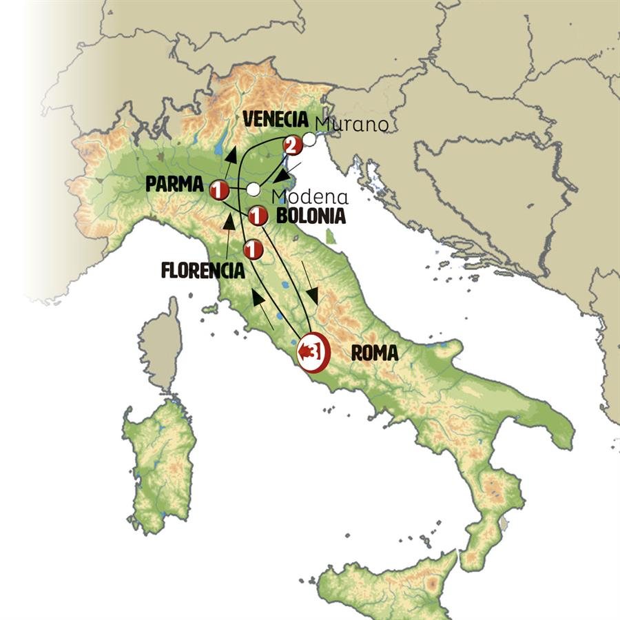 Saldremos de Venecia a FERRARA, ciudad Patrimonio de la humanidad rival de Venecia, destaca la plaza del Duomo y su castillo del siglo XIV. Tras ello viajamos a MODENA, parando antes de llegar en una “Aceitata”(entrada incluida) productora del vinagre de Módena. Tiempo para almorzar y pasear por Módena con su hermoso centro histórico donde destaca su catedral románica. Al salir conoceremos el Museo Enzo Ferrari en el Valle del Motor. Continuamos a BOLONIA, ciudad llena de vida con la primera universidad europea (del siglo XI). Sugerimos no deje de visitar la Basílica de Santo Estéfano y la Plaza Mayor.