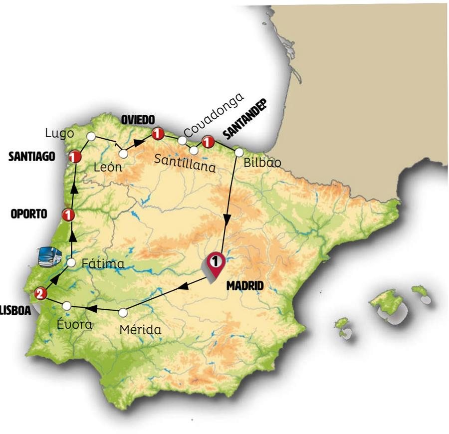 ¡Bienvenidos a su circuito de Europamundo!Salimos de Madrid, viajamos hacia la capital de Extremadura: MÉRIDA, entrada incluida al conjunto arqueológico del Teatro y Anfiteatro romanos, de excelente conservación, hoy son Patrimonio de la Humanidad. Tiempo para almorzar en el agradable centro historico peatonal con mucha vida y restaurantes. Continuando a Portugal pararemos en ÉVORA, ciudad también declarada Patrimonio de la Humanidad, con sus calles blancas, sus palacios renacentistas y su catedral. LISBOA, llegada al final de la tarde.
