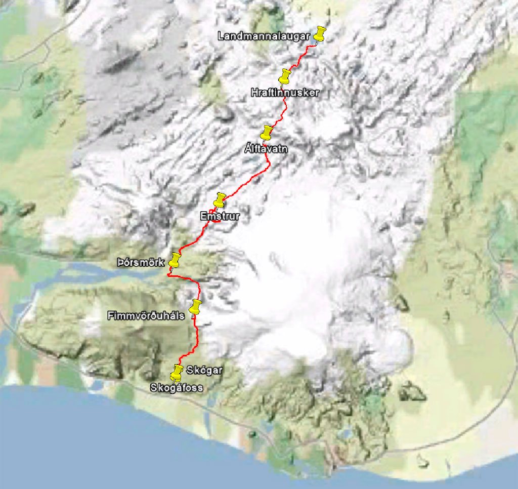 El terreno, los caminos Casi todos los trayectos se realizarán por caminos, si bien el terreno es variado: rocas sueltas, piedra y arena volcánica, tundra, musgo, ríos y torrenteras. Los desniveles son moderados, ascendiendo hasta un máximo de 1000 metros en un solo día (mirar distancias y desniveles aproximados. Es necesario prestar atención a los cruces de ríos y atender las indicaciones del guía, ya que hay lugares que pueden ser complicados y otros de paso fácil y seguros.