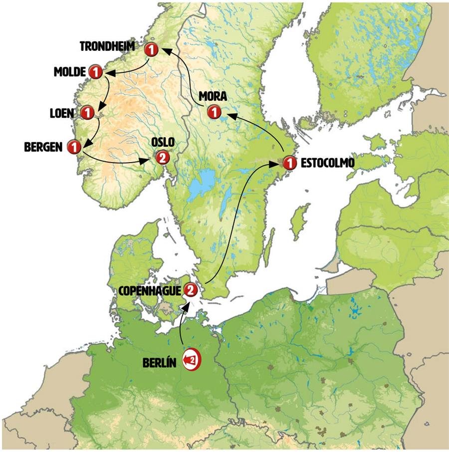 Salimos temprano hacia NORUEGA. Grandes bosques, lagos y montañas en nuestra ruta. Parada en FUNASDALEN, popular estación de esquí. Continuación a ROROS, tiempo para almorzar y conocer esta antigua población minera, Patrimonio de la Humanidad, considerada como uno de los pueblos más bonitos de Noruega. Destaca su centro histórico, las antiguas casas de mineros y su museo sobre la antigua fundición. Continuación a TRONDHEIM, en la región costera central de Noruega, la tercera mayor ciudad del país con una larga historia que se remonta a la era vikinga y, que durante la Edad Media, fue capital de Noruega. Destaca su catedral del siglo XI y su viejo puente sobre el canal. Disfrute de su gran vida nocturna y numerosos restaurantes.