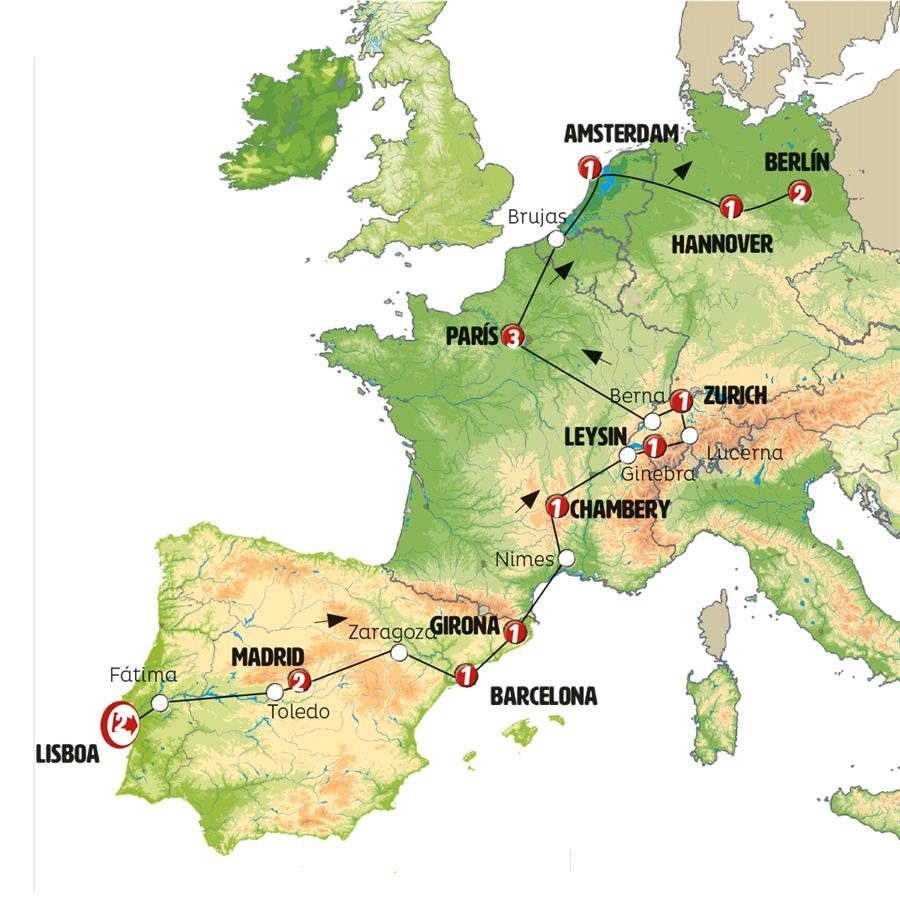 La etapa de hoy tiene paisajes bellísimos de alta montaña. No olvide su ropa de invierno, subimos en teleférico a uno de los puntos más espectaculares de SUIZA donde podrá ver el hielo y la nieve todo el año. Incluimos la subida en teleférico a GLACIER 3000, podrá caminar en el puente colgante sobre el vacío entre dos cumbres de montaña, entrar en la Catedral de Hielo o “jugar” en el Fun Park. Parada en INTERLAKEN y tiempo para almorzar. Entre muy pintorescos lagos continuamos a LUCERNA, una de las ciudades más bellas de Suiza. Continuamos a ZURICH, un tiempo para pasear en el centro antes de ir al hotel.Nota: en ocasiones, por razones de causa mayor meteorológicas como lluvias o fuertes vientos, el teleférico al Glacier 3000 podrá no opera. En ese caso, se ofrecerá una experiencia alternativa de paisajes alpinos igualmente bella.