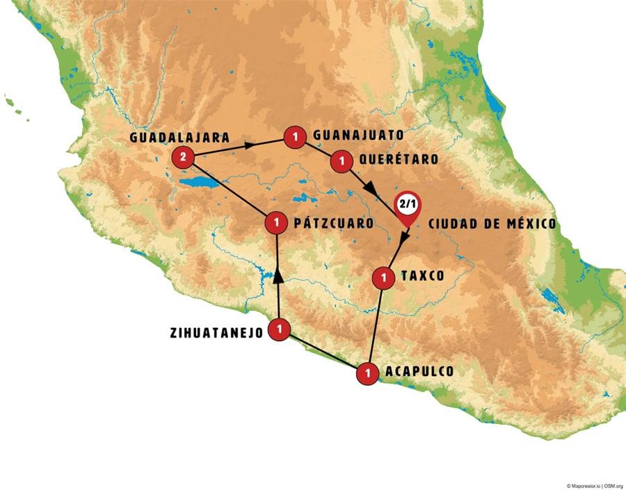 Tras el desayuno salimos de Ciudad de México hacia el estado de MORELOS,TEPOZTLAN , pueblo mágico, conocido como destino espiritual, de bienestar, en un entorno de belleza natural, ubicado junto a gran cerro verde que tiene pequeña pirámide (no la visitaremos). Tiempo para pasear por sus calles o mercado de artesanías. Continuamos a CUERNAVACA, la capital del estado de Morelos, conocida como "La Ciudad de la Eterna Primavera". Fundada en la época prehispánica, esta ciudad ha sido un refugio para la nobleza azteca y más tarde para la élite colonial española. Podrá conocer el Palacio de Hernán Cortés, la catedral y pasear por sus jardines y parques. Tiempo para almorzar. Pasamos al estado de Guerrero, TAXCO, uno de los Pueblos Mágicos mas bonitos de México, rodeado de montañas, con su belleza colonial, sus calles empedradas, sus casas blancas y tradición en la platería. Tiempo para visitar la ciudad y alojamiento.Nota: En ocasiones pueden existir dificultades de alojamiento en TAXCO, en estos casos podríamos salir de TAXCO al final de la tarde para alojarnos en Chilpancingo