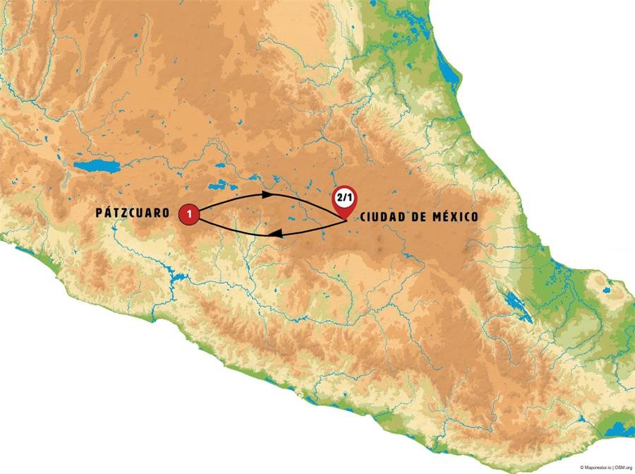 Iniciamos nuestra jornada dirigiéndonos a zonas de montes y bosques donde invernan las mariposas monarca, conocemos LA MINA DE LAS DOS ESTRELLAS, mina-museo que promueve la historia y cultura minera de la región. TLALPUJAHUA, pueblo mágico de Michoacán, con su magnífico santuario barroco, sus calles empedradas, este pueblo es conocido por la fabricación de decoración navideña. Nos sorprenderá la presencia de Santa Claus en muchos de sus comercios. Tiempo para pasear y almorzar. Continuamos hacia PÁTZCUARO, donde incluimos una visita panorámica de la que es una de las ciudades coloniales más bonitas de México, con origen prehispánico, su arquitectura colonial, sus mercados de artesanía y su ambiente la hacen inolvidable.