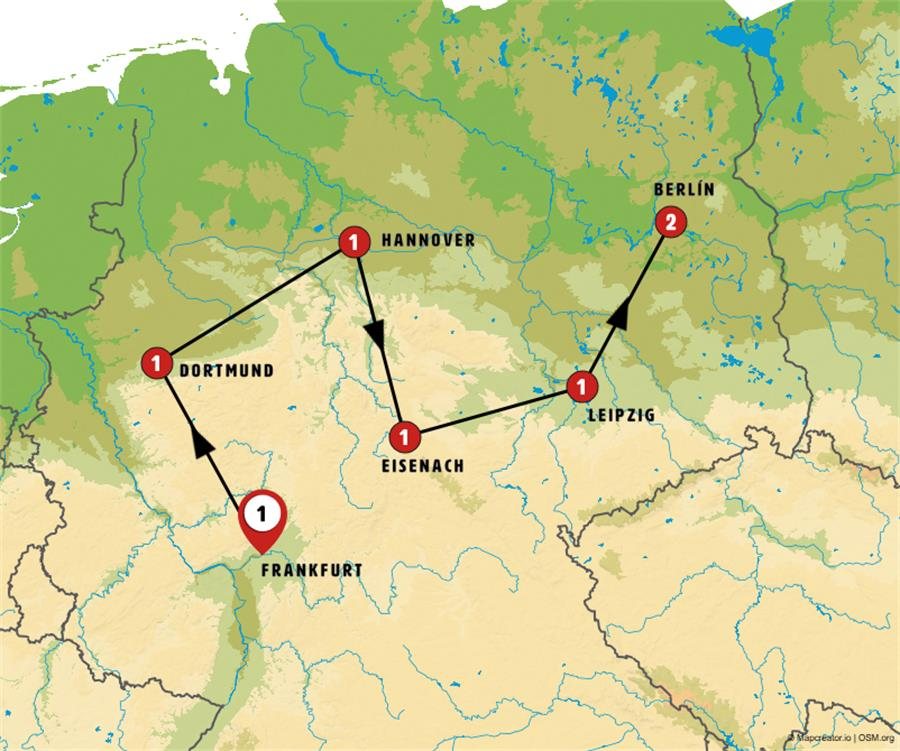 Comenzamos el día visitando el impresionante CASTILLO DE WARTBURG (entrada incluida), declarado Patrimonio de la Humanidad por la UNESCO, donde Martín Lutero tradujo el Nuevo Testamento al alemán. Tras ello, en EISENACH. Posteriormente, tendremos tiempo libre para almorzar y pasear en la ciudad para que, si le gusta la música, pueda visitar la casa de Bach o bien conocer el museo del automóvil donde podrá ver múltiples vehículos antiguos.Continuamos hacia GOTHA, donde podremos admirar su inmenso palacio barroco (visita exterior) y su clásico casco antiguo. En ERFURT, la capital de Turingia, exploraremos una ciudad llena de vida, con su gran catedral y su casco antiguo que incluye un precioso puente medieval habitado desde hace más de 500 años.Llegaremos al final de la tarde a LEIPZIG, una de las ciudades más ricas en historia y cultura de Alemania, donde vivieron los músicos Bach y Wagner, gran centro industrial durante la época de la RDA y que en la actualidad cuenta con más de medio millón de habitantes