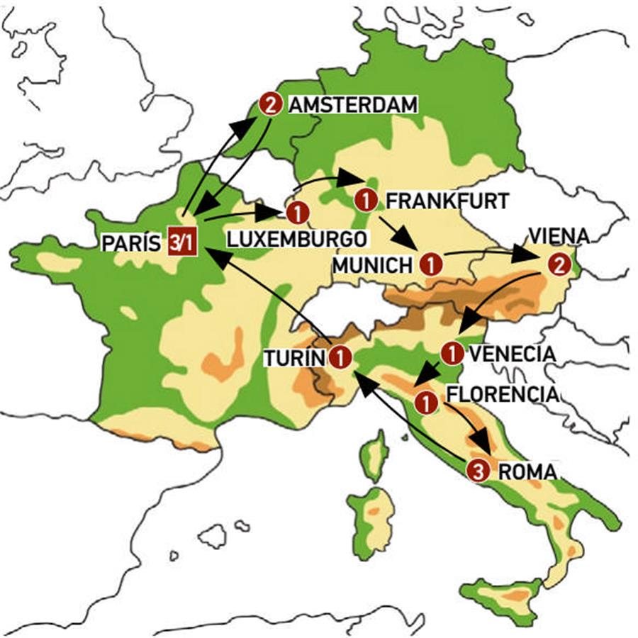 Paradas en Ruta: este circuito admite la posibilidad de que usted pueda programar una o más paradas en su viaje, en la ciudad que desee por período de 1, 3, 4 o 7 noches según circuito y fechas de salida. Es fundamental que el circuito tenga salida posterior a la fecha escogida y permita la salida deseada. El suplemento por parada efectuada es de 40 Euros/52 Dólares por persona. Si la parada se realiza para tomar otro circuito del mismo proveedor no se abonará este suplemento.