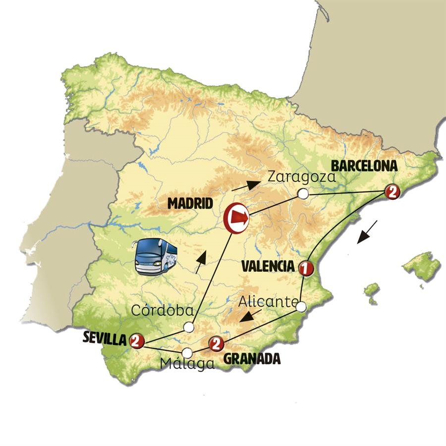 Continuamos entre agradables paisajes por la comunidad Valenciana. ALICANTE, ciudad bañada por el Mediterráneo, combina playas de arena dorada con un casco histórico lleno de encanto. Destaca el imponente Castillo de Santa Bárbara. Tiempo para pasear. Continuamos entre áridos paisajes por la región de Murcia. Parada en ruta para almorzar. En Andalucía, realizamos nuestra primera parada en GUADIX, famosa por sus singulares casas cueva habitadas. Su casco histórico combina la catedral renacentista, barrios tradicionales y vistas únicas a la Sierra Nevada. Continuación a GRANADA. Llegada al final de la tarde, cena incluida.