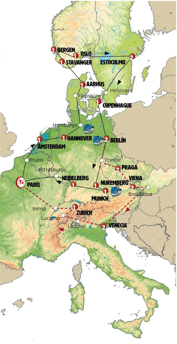Viajamos entre bosques hacia DRESDE, ciudad que gracias a su excepcional patrimonio arquitectónico y artístico se ha convertido en uno de los centros turísticos principales de Alemania. Tiempo para almorzar y conocer sus palacios. Posteriormente pasamos a la REPÚBLICA CHECA. PRAGA, llegada a media tarde, incluimos visita panorámica de esta ciudad, una de las más hermosas de Europa, destaca el Castillo, la Plaza del Ayuntamiento y el hermoso Puente de Carlos. Al final del día, podrá pasear por el pintoresco centro, repleto de cervecerías tradicionales donde podrá probar auténticas cervezas locales.Nota: en ocasiones, la visita de Praga se realizará el domingo.
