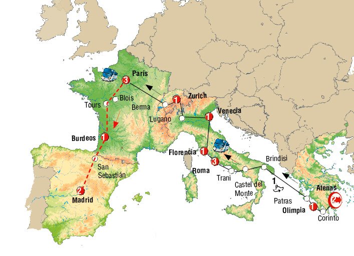 Con guía local visitamos el recinto Arqueológico de OLIMPIA, podrá usted conocer su museo y el recinto arqueológico (visita con guía, entrada al recinto no incluida) que fue cuna de los juegos olímpicos en la antigüedad. Continuamos ruta hacia PATRAS, tercera ciudad griega, un tiempo para pasear por su activo centro lleno de vida. Tras ello viajamos al norte de Grecia, AMFILOCHIA, breve parada en esta tranquila ciudad costera; ARTA, ciudad del Epiro con su puente romano. Llegada a IGUMENITSA, tiempo para cenar y embarque para cruzar el mar Jónico. Noche a bordo, acomodación en camarotes dobles con baño (recomendamos llevar un bolso de mano para lo noche a bordo. El día domingo el desayuno en el barco no se encuentra incluido). Nota: El ferry utilizado, único disponible, tiene salida programada a la una de la madrugada. Normalmente no se puede acceder a bordo hasta pasada medianoche. En algunas ocasiones, por llegada tardía del ferry puede ser más tarde. Es un ferry de condiciones sencillas (camarotes dobles con baño privado). En ocasiones, por motivos climatológicos, revisión del buque, modificación de horarios, huelgas, overbooking u otros motivos, nos vemos forzados a volar de Atenas a Roma. En ese caso se suprimen las ciudades de Amfilochia y Arta incluyéndose el día domingo la excursión a Nápoles y Pompeya.