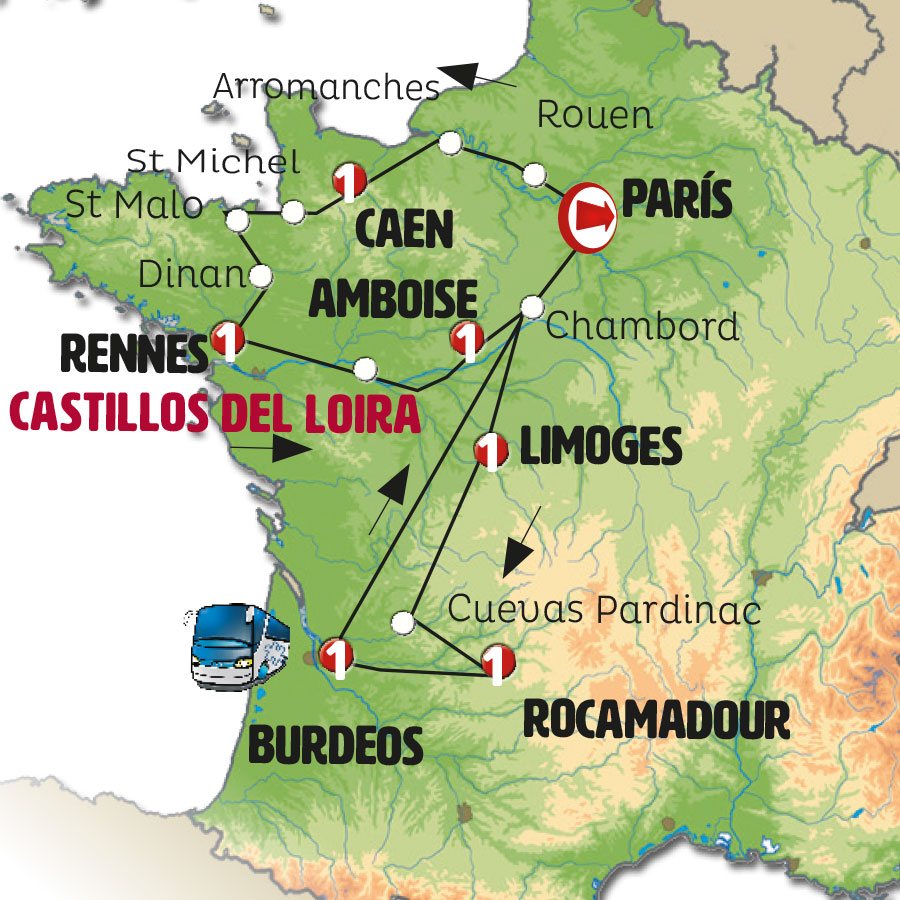 Saldremos de Limoges hacia la Dordoña, otro de los grandes ríos históricos en el centro de Francia. Pocas regiones contienen tantos pueblos llenos de encanto y paisajes inolvidables. Llegamos a LASCAUX, incluiremos la entrada al museo y replica de las cuevas, aprenderemos sobre la prehistoria con las magníficas pinturas rupestres. Tras ello conocemos SARLAT, ciudad patrimonio de la humanidad, conserva un centro histórico renacentista increíblemente bien conservado, tiempo para pasear y almorzar. En BEYNAC conocemos un castillo medieval dominando el río (entrada incluida). ROCAMADOUR, hermosísimo pueblo medieval con importante santuario “colgado” en un barranco; sugerimos baje caminando por el vía crucis y suba con su ascensor. Cena incluida.