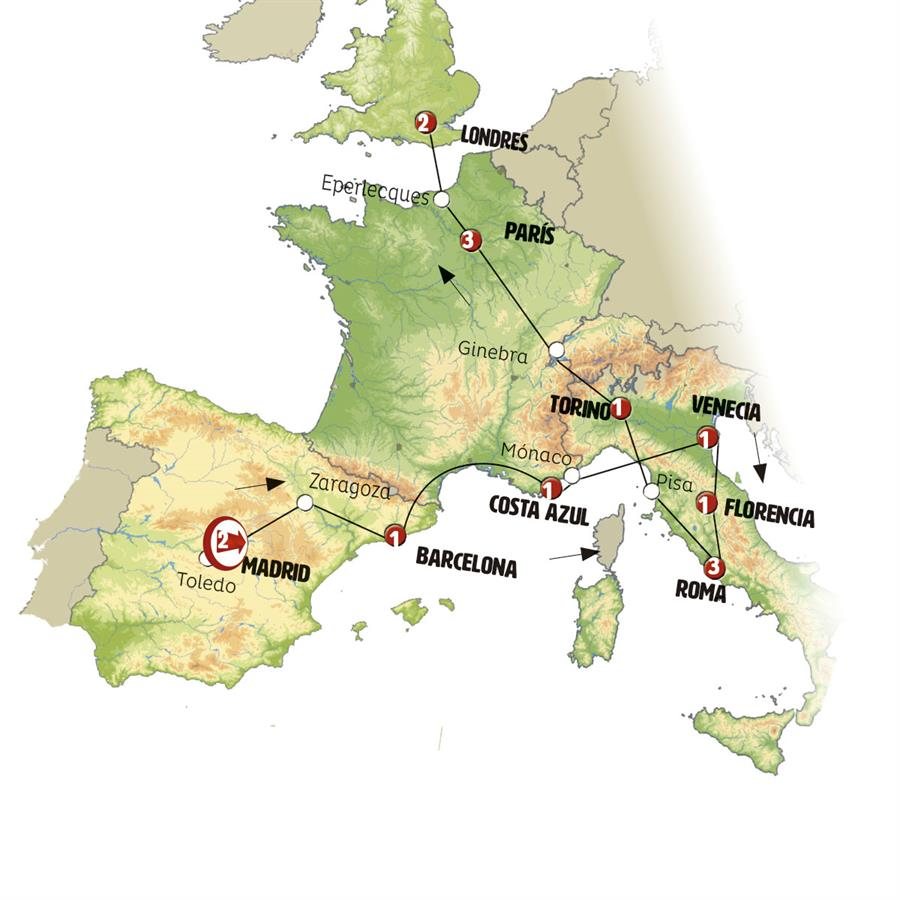 Tiempo libre en BARCELONA, podrá usted caminar por el Barrio Gótico, Las Ramblas y visitar la catedral. A las 12:00 h salimos hacia Francia y la Costa Azul atravesando la Provenza francesa. Parada en ruta para almorzar. Continuación a NIZA, llegada al final del día.Nota: En algunas fechas el alojamiento podrá ser efectuado en un punto próximo a Niza en la Costa Azul.