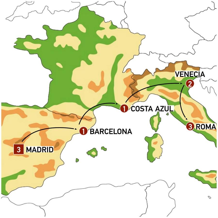 Tras el desayuno realizaremos una breve visita en autocar de la ciudad de Niza, capital de la Costa Azul donde pasaremos por el emblemático Paseo de los Ingleses conocido por sus bellos paisajes costeros, la plaza Massena, corazón de la ciudad y su bello puerto antiguo. Saldremos de Niza, entre impresionantes paisajes y realizaremos una parada en Fragonard, donde nos explicarán el proceso de fabricación tradicional del perfume. Tiempo en el Principado independiente de MÓNACO, uno de los países más pequeños del mundo conocido por su acantilado sobre el mar, el Palacio del Príncipe, el Casino y el lujo. Continuamos entre magníficos paisajes por la Rivera Italiana, los Alpes se encuentran con el Mediterráneo. VENECIA, llegada al final del día. Alojamiento en la zona de Mestre.