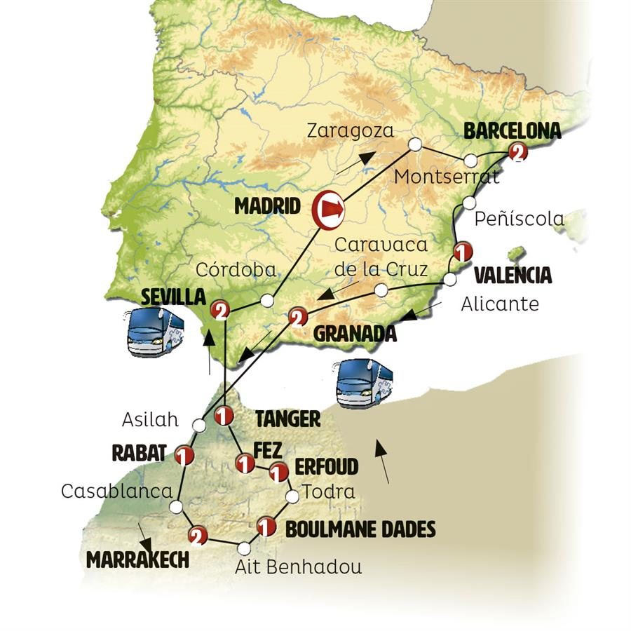 Viajamos hacia el sur siguiendo el Mediterráneo. Una parada en PEÑISCOLA, pequeña ciudad medieval amurallada rodeada por hermosas playas. Tiempo para un paseo. Seguimos a VALENCIA donde llegaremos a la hora del almuerzo. Por la tarde efectuamos una visita con guía local de esta ciudad portuaria de la costa levantina, con más de 2000 años de historia que salpican su trazado urbanístico de monumentos de todas las épocas que contrastan con la vanguardia arquitectónica de edificios como el de la Ciudad de las Artes y las Ciencias. Cena típica de gastronomía local incluida.