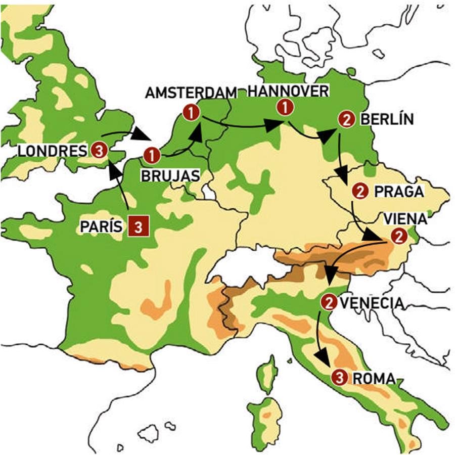 Saldremos de Londres, placidos paisajes de verdes colinas en el sur de Inglaterra. Tramites fronterizos antes de nuestro embarque hacia Calais. Agradable travesía en moderno ferry cruzando el Canal de la Mancha, ¡disfrute del ferry y del aire del oceano!. Llegada a Francia y continuacion hacia Bélgica. BRUJAS, la encantadora y mundialmente conocida ciudad flamenca de hermosos canales.