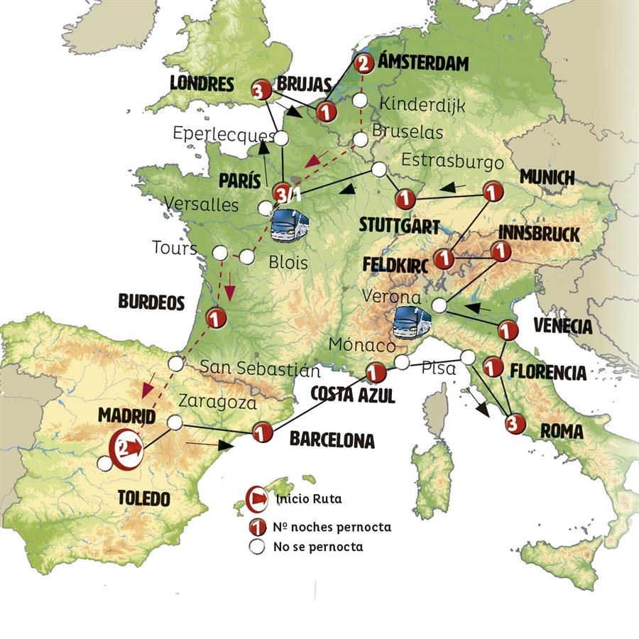 Paradas en Ruta: este circuito admite la posibilidad de que usted pueda programar una o más paradas en su viaje, en la ciudad que desee por período de 1, 3, 4 o 7 noches según circuito y fechas de salida. Es fundamental que el circuito tenga salida posterior a la fecha escogida y permita la salida deseada. El suplemento por parada efectuada es de 40 Euros/52 Dólares por persona. Si la parada se realiza para tomar otro circuito del mismo proveedor no se abonará este suplemento.