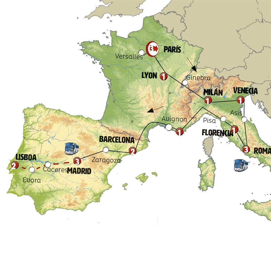 Salimos de Madrid, viajamos hacia la capital de Extremadura: MÉRIDA, entrada incluida al conjunto arqueológico del Teatro y Anfiteatro romanos, de excelente conservación, hoy son Patrimonio de la Humanidad. Tiempo para almorzar en el agradable centro historico peatonal con mucha vida y restaurantes. Continuando a Portugal pararemos en ÉVORA, ciudad también declarada Patrimonio de la Humanidad, con sus calles blancas, sus palacios renacentistas y su catedral. LISBOA, llegada al final de la tarde.