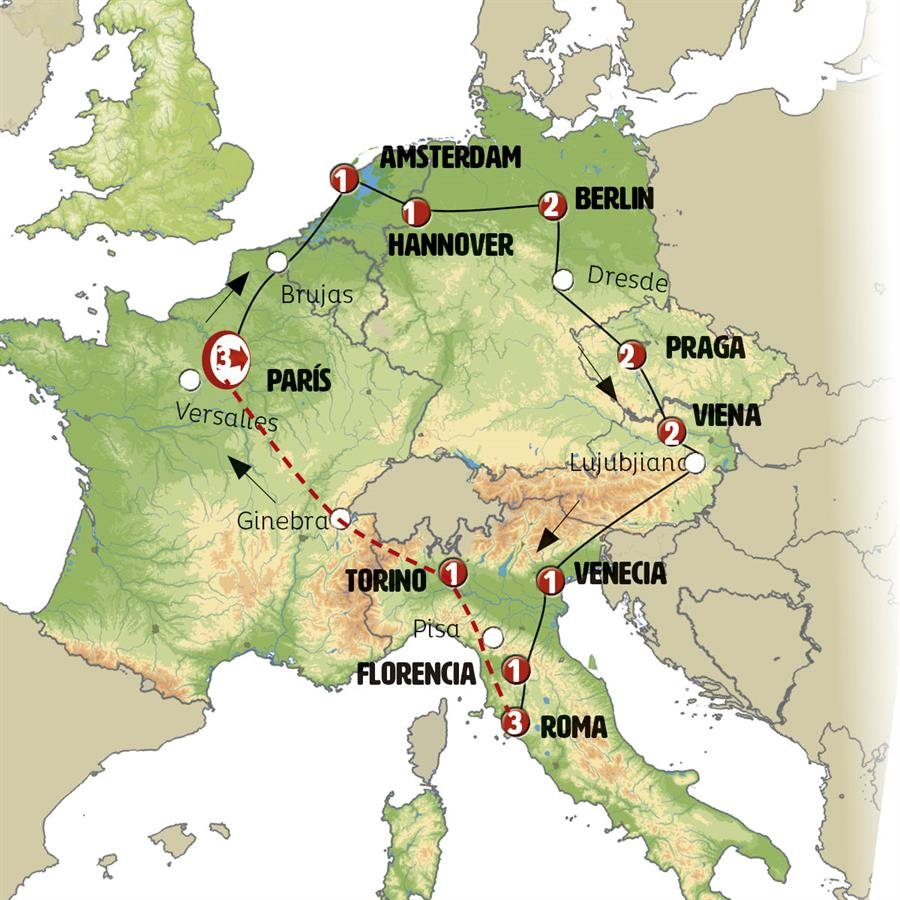 Paradas en Ruta: este circuito admite la posibilidad de que usted pueda programar una o más paradas en su viaje, en la ciudad que desee por período de 1, 3, 4 o 7 noches según circuito y fechas de salida. Es fundamental que el circuito tenga salida posterior a la fecha escogida y permita la salida deseada. El suplemento por parada efectuada es de 40 Euros/52 Dólares por persona. Si la parada se realiza para tomar otro circuito del mismo proveedor no se abonará este suplemento.