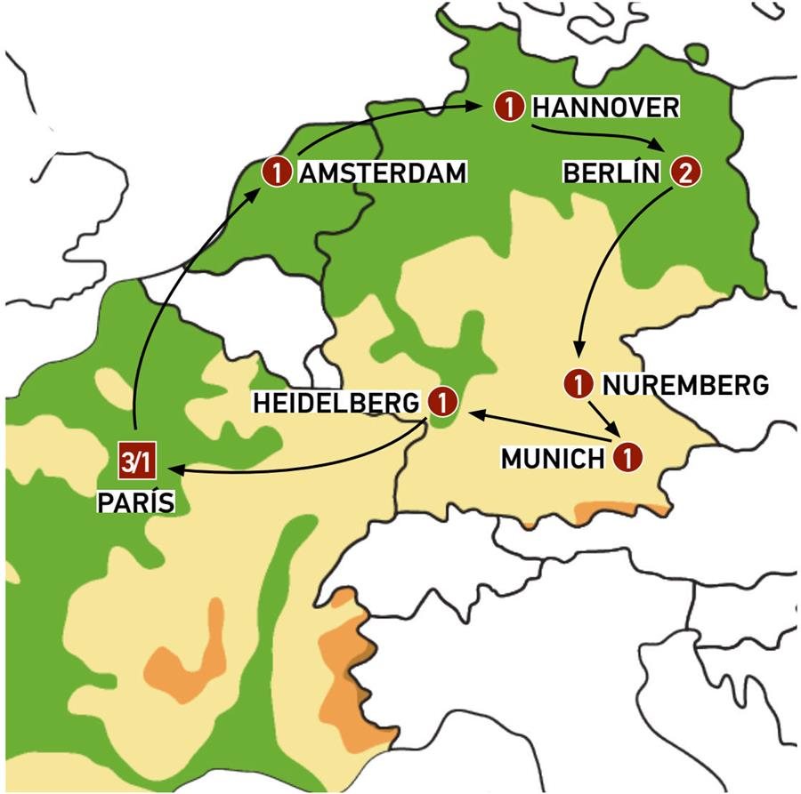 Viajamos a DRESDE, la capital de Sajonia, conocida por su arquitectura barroca y renacentista, sus palacios y los bonitos paseos junto al río Elba. Seguimos hacia Baviera. Llegada a BAMBERG hermosísima ciudad llena de vida; no deje de pasear por la pequeña Venecia. Continuamos a NUREMBERG, la segunda ciudad de Baviera, ciudad de larga historia donde sugerimos visitar el punto donde se encontraba el Coliseo de Hitler.