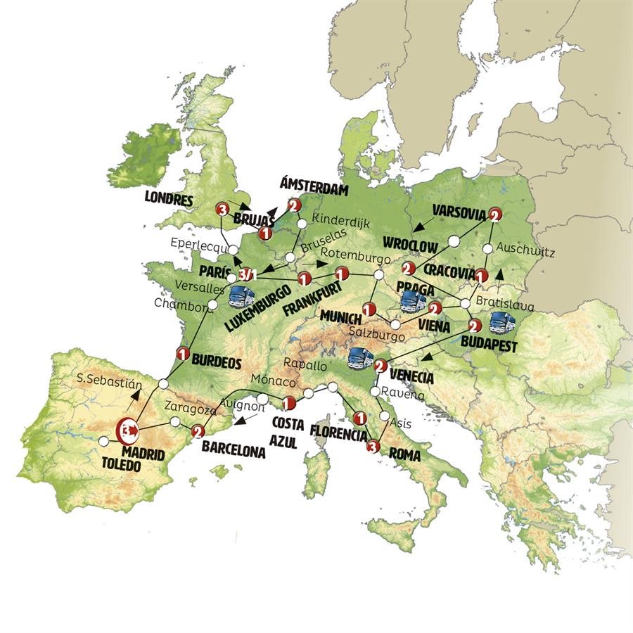 Paradas en Ruta: este circuito admite la posibilidad de que usted pueda programar una o más paradas en su viaje, en la ciudad que desee por período de 1, 3, 4 o 7 noches según circuito y fechas de salida. Es fundamental que el circuito tenga salida posterior a la fecha escogida y permita la salida deseada. El suplemento por parada efectuada es de 40 Euros/52 Dólares por persona. Si la parada se realiza para tomar otro circuito del mismo proveedor no se abonará este suplemento.