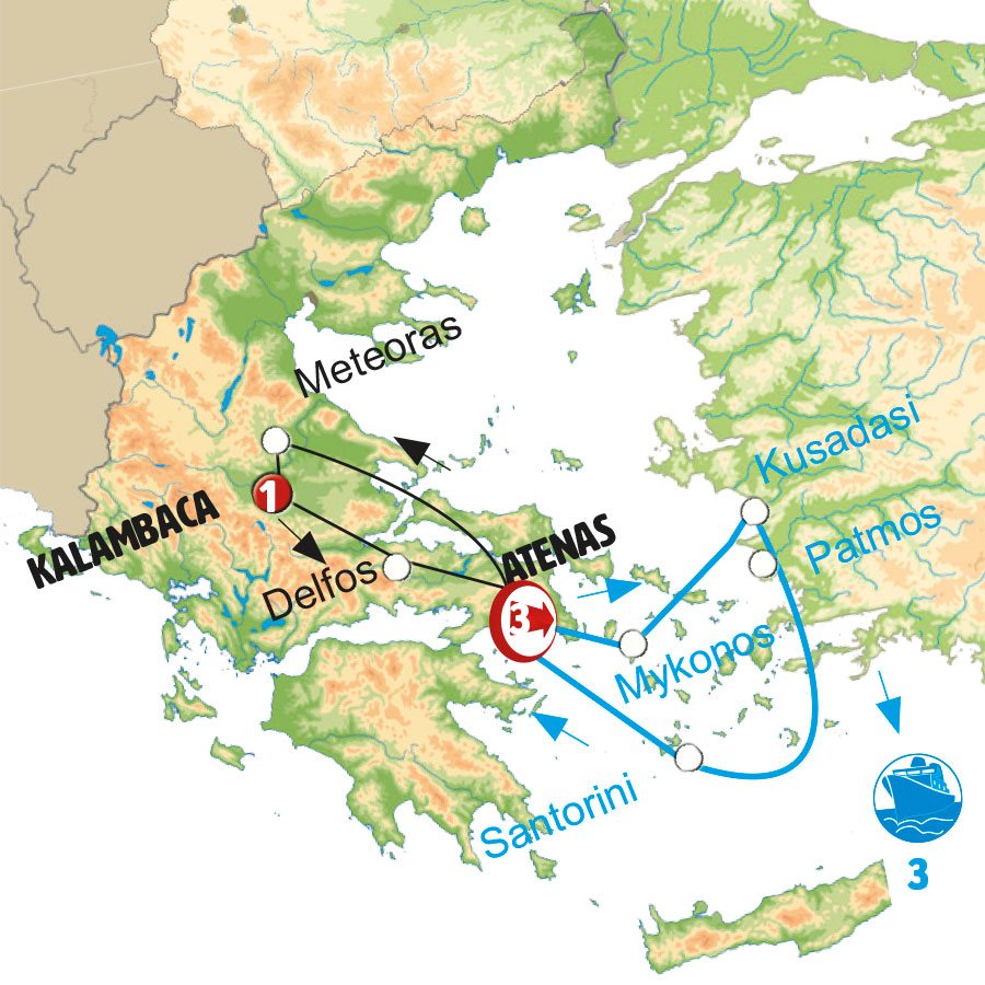 Salimos al comienzo de la mañana hacia el norte de Grecia. Una parada en KAMENA VOURLA, bonito núcleo turístico junto al mar entre magníficos paisajes. Continuación hacia el norte. Realizamos una breve parada en el desfiladero donde se desarrolló la batalla de las Termópilas. Conocemos KASTRAKI, pintoresco pueblo con hermosas visas sobre todo el valle donde tendremos tiempo para almorzar antes de visitar el valle de LAS METEORAS, impresionante lugar declarado Patrimonio de la Humanidad por la UNESCO. Conoceremos todo el valle e incluimos la entrada a uno de los más famosos monasterios. Llegada a KALAMBAKA, cena incluida.