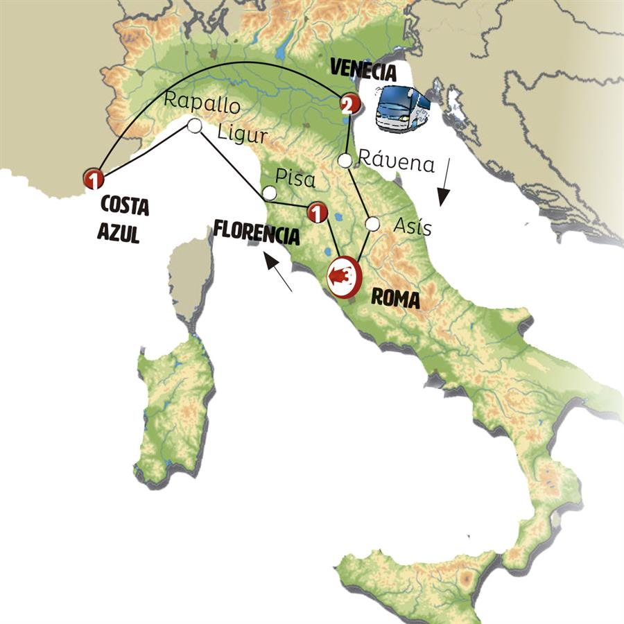 Siguiendo la laguna de Venecia, llegamos a RÁVENA donde podemos conocer el Mausoleo de Gala Placidia y la Basílica de San Vital. Tras ello cruzamos los Apeninos hacia ASÍS. Con un padre franciscano o guía local, conocemos la Basílica de San Francisco. Continuación a ROMA, llegada al final del día.Fin de nuestros servicios con el deseo de haber brindado una experiencia inolvidable. Compruebe la hora de su vuelo por si necesitase una noche adicional.
