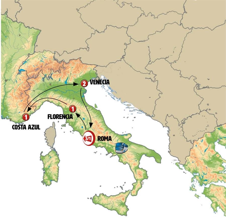 Salida de Florencia hacia PISA, tiempo para admirar su conjunto artístico donde se encuentra la famosa torre inclinada. La etapa que seguimos a continuación es de extraordinaria belleza paisajística siguiendo la Riviera Italiana. Llegada a SESTRI LEVANTE, encantadora pequeña ciudad turística junto al mar. Tiempo para almorzar y pasear. Continuación hacia la Costa Azul francesa. Llegada a media tarde a MONTECARLO, podrá conocer su histórico casino. Continuación a la NIZA. Llegada sobre las 20.00hrs.