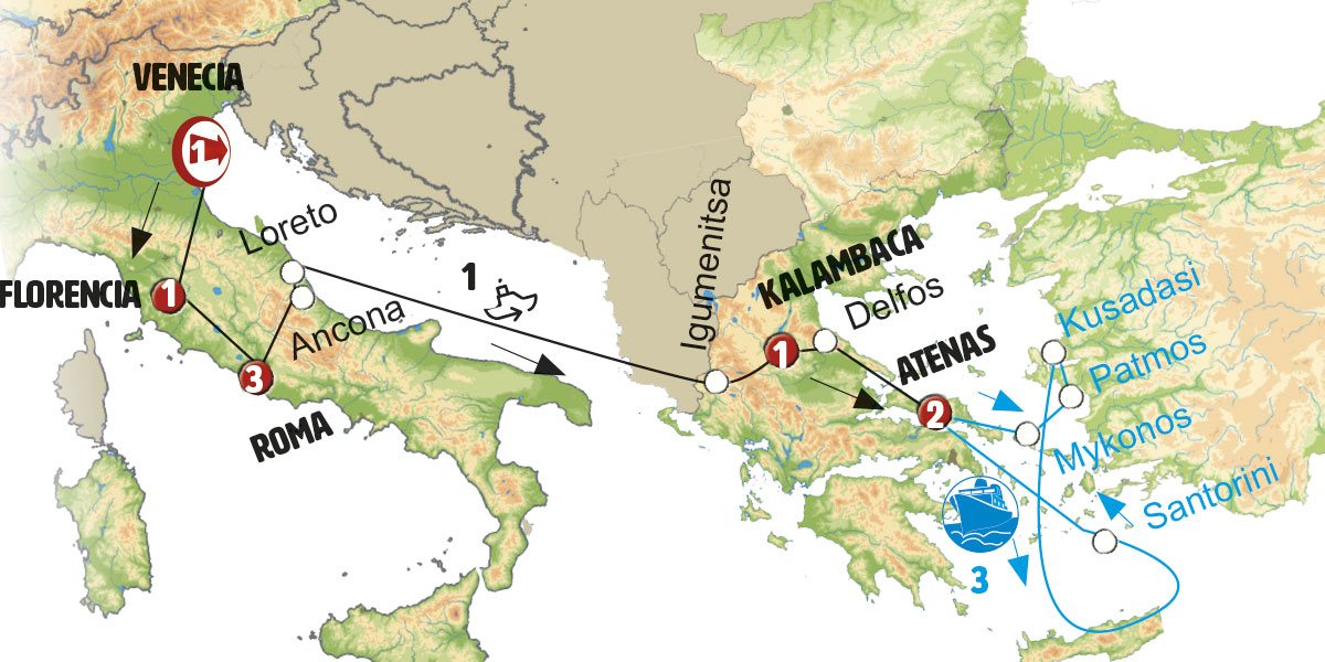 06.30 hrs.- Puerto de Lavrio. Llegada al Puerto y fin de nuestros servicios.Nota: Si usted está llegando en el ferry desde la isla de Rodas, su puerto de llegada será El Pireo. Nota: Caso de solicitar noches adicionales en Atenas, el traslado del puerto al hotel no está incluido y se facturará.