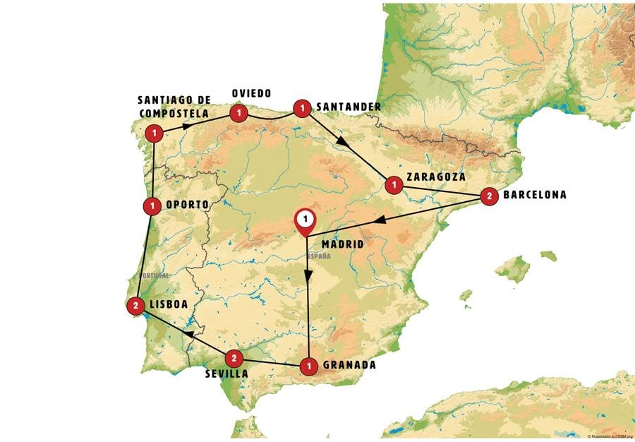 Viajamos hacia el sur siguiendo el Mediterráneo. Una parada en PEÑISCOLA, pequeña ciudad medieval amurallada rodeada por hermosas playas. Tiempo para un paseo. Seguimos a VALENCIA, ciudad portuaria de la costa levantina donde llegaremos a la hora del almuerzo. ¿Probará su paella?. Sobre las 16:30 h salimos y tras realizar una breve parada en la vanguardista Ciudad de las Artes y las Ciencias de Valencia, seguiremos hacia MADRID. Llegada prevista sobre las 20:30 / 21.00hrs. Nota: Si el número de viajeros de Valencia a Madrid es muy limitado, el viaje podrá efectuarse en tren de alta velocidad.