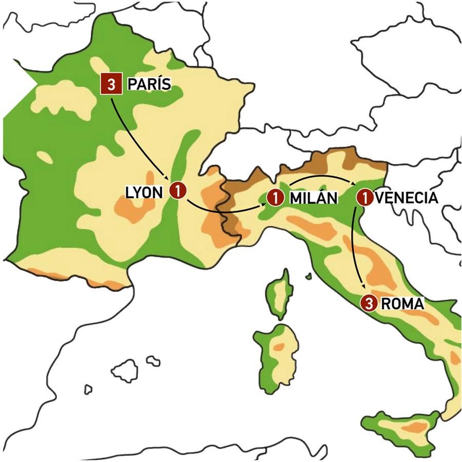 Viajamos hacia el centro de Francia. La región de Borgoña, histórica región de agradables paisajes dominados por sus viñedos donde se producen algunos de los mejores vinos del mundo. Conocemos BEAUNE en el centro de la región de los vinos, sus calles llenas de flores, su hospicio o su museo del vino pueden ser recuerdos de su viaje. Tiempo para almorzar y pasear. LYON, llegada a media tarde; la capital de la Galia Romana, a la orilla del Ródano, su centro histórico ha sido declarado Patrimonio de la Humanidad. Incluiremos la subida en funicular a Notre Dame de Fourvière, emocionante lugar con impresionante vista sobre la ciudad. Tiempo libre y alojamiento.Nota: en ocasiones, parte de los grupos estarán alojados en Chambery, ciudad próxima a Lyon. En estos casos, se saldrá al final de la tarde hacia Chambery, donde tendrán el alojamiento. A primera hora de la mañana, dispondrán de un tiempo para conocer la capital de la Saboya, ciudad de estilo medieval con hermoso casco histórico y gran castillo.