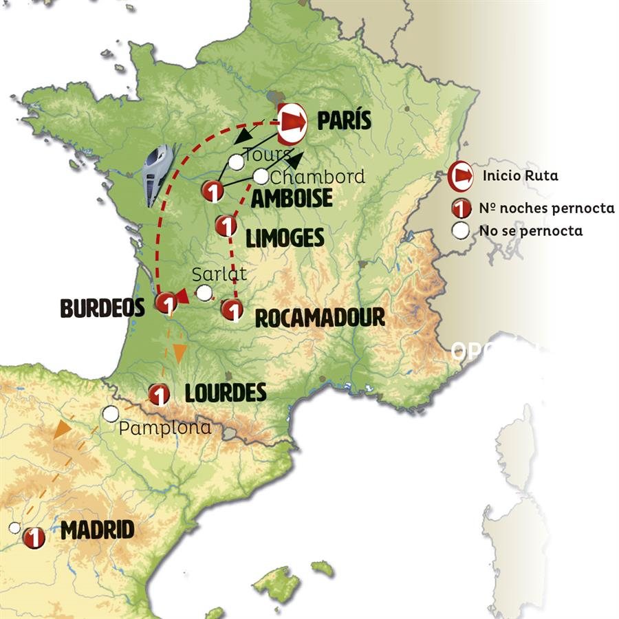 Viajamos hacia el sur. En el valle del Loira paramos en BLOIS, pintoresca ciudad en la que recomendamos visitar su castillo. Un paseo y tiempo para almorzar en TOURS. Capital regional a orillas del Loira. Por la tarde conocemos el Palacio de VILLANDRY famoso por sus jardines y sus flores, incluimos la entrada a los jardines. Continuación a AMBOISE, ciudad con interesante barrio medieval a orillas del Loira. Cena incluida y alojamiento.