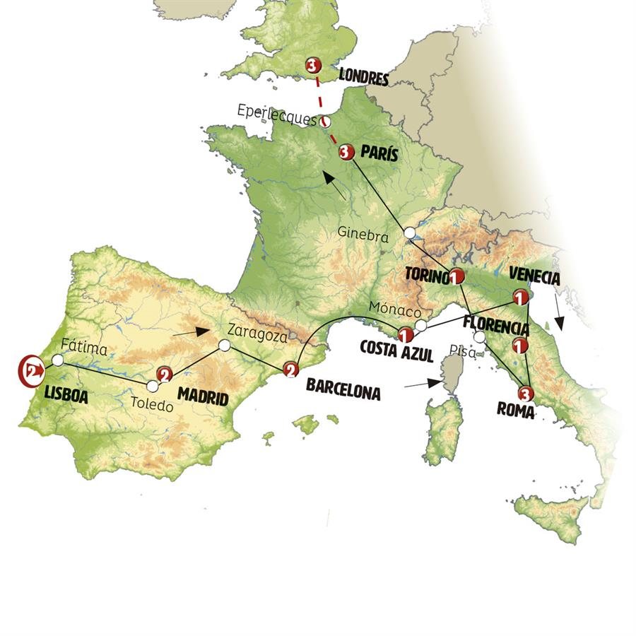 Paradas en Ruta: este circuito admite la posibilidad de que usted pueda programar una o más paradas en su viaje, en la ciudad que desee por período de 1, 3, 4 o 7 noches según circuito y fechas de salida. Es fundamental que el circuito tenga salida posterior a la fecha escogida y permita la salida deseada. El suplemento por parada efectuada es de 40 Euros/52 Dólares por persona. Si la parada se realiza para tomar otro circuito del mismo proveedor no se abonará este suplemento.