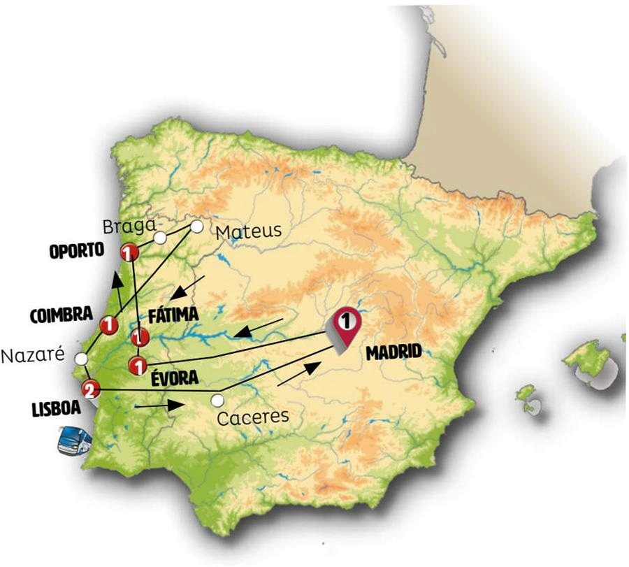 Saldremos temprano de Portugal, atravesamos la bonita region de el Alentejo. Parada para un café en ESTREMOZ, encantadora ciudad con castillo medieval, calles adoquinadas y arquitectura y ambiente tranquilo que reflejan la autenticidad portuguesa. Paso a España. En CÁCERES podrá almorzar y pasear por su centro histórico, uno de los conjuntos urbanos medievales y renacentistas mejor conservados del mundo. Continuación a MADRID, llegada al final del día.